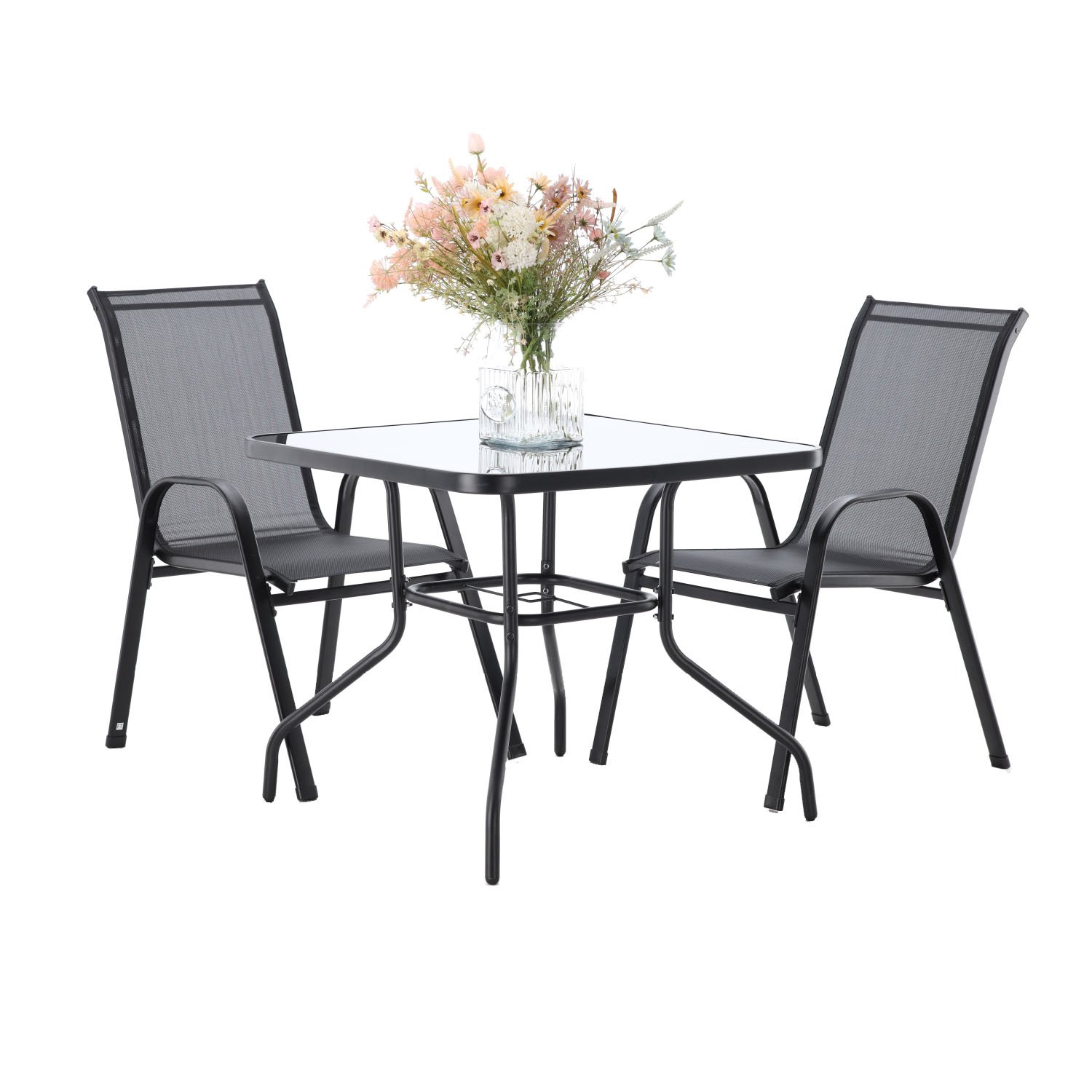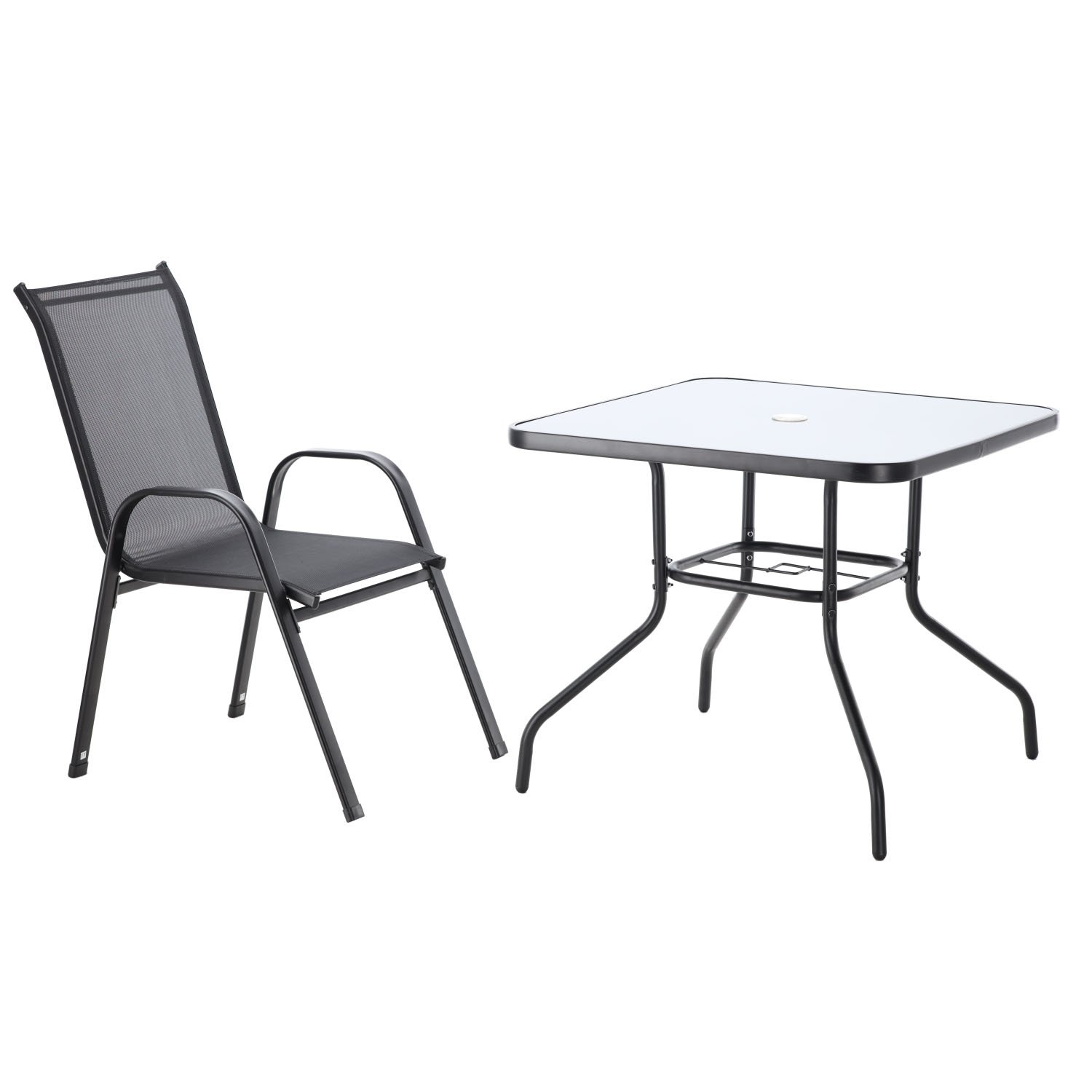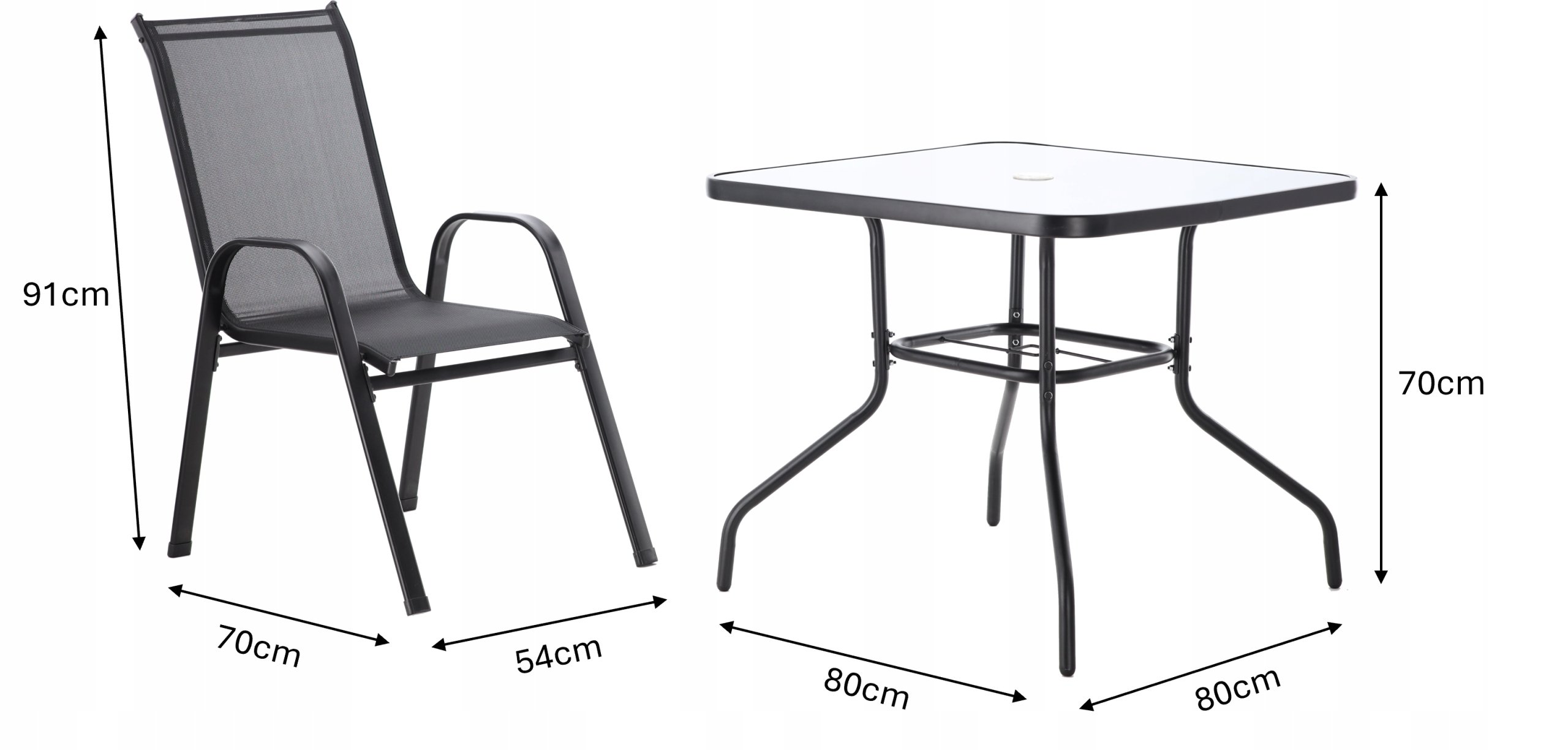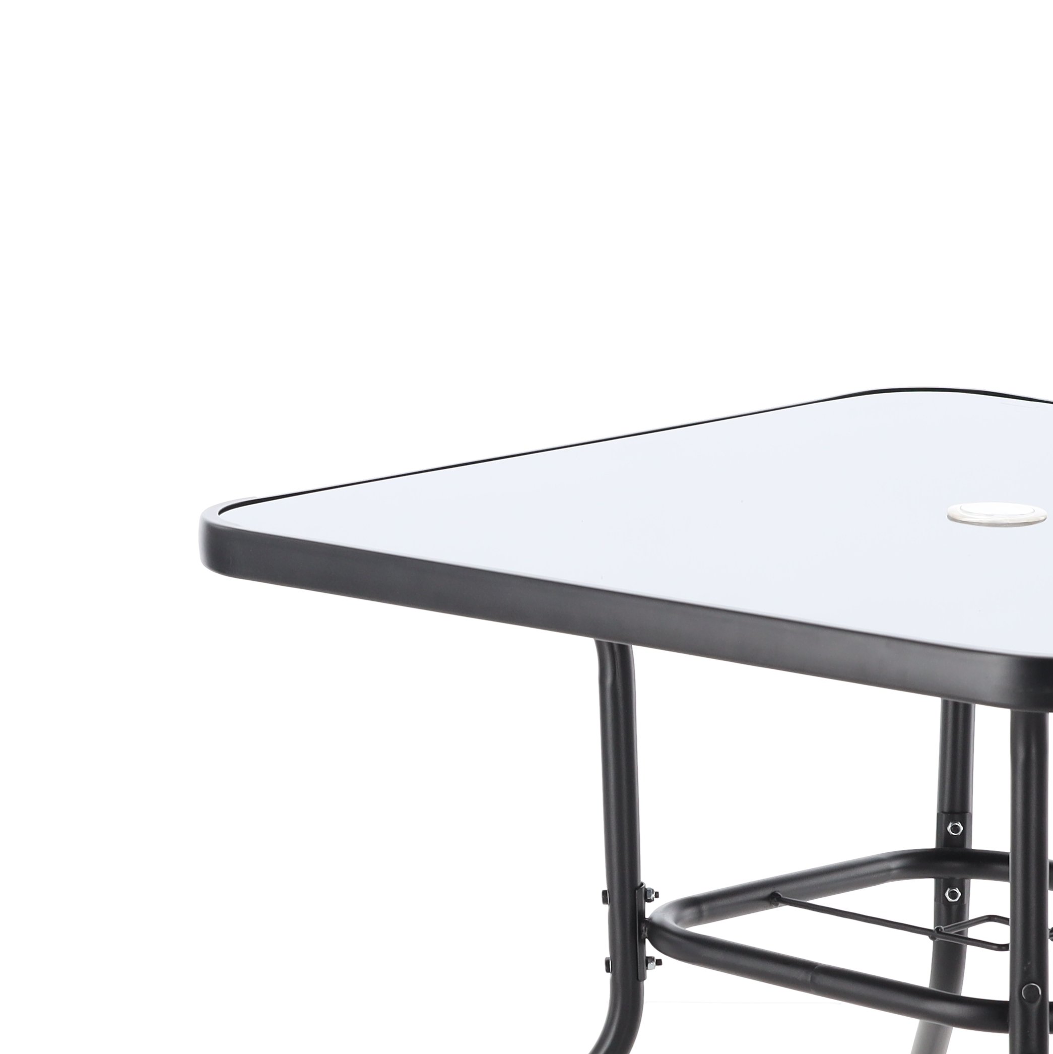 Stol ima ploču od kaljenog stakla debljine 5 mm, koja je elegantna, glatka i jednostavna za čišćenje. Staklo je sigurno jer je kaljeno i tako otporno na udarce te temperaturne promjene. Kvadratni oblik stola s dimenzijama 80 × 80 × 70 cm omogućuje udobno postavljanje četiri stolice oko njega, a istodobno je dovoljno kompaktan da se savršeno uklopi i u manje vanjske prostore.