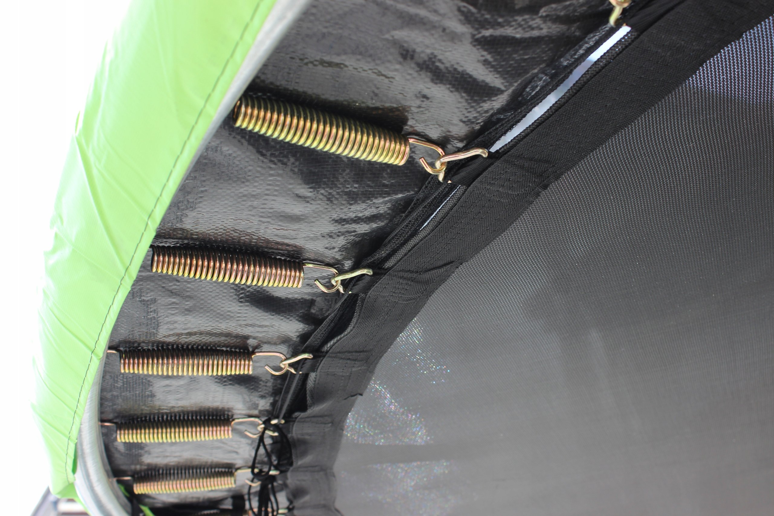 Podloga od polipropilena (PP) otporna je na UV zrake i vlagu, što znači da zadržava elastičnost i oblik čak i nakon duljeg izlaganja suncu ili kiši. Površina za skakanje odlikuje se optimalnom napetošću koju omogućuju ravnomjerno raspoređene opruge, što stvara ugodno, ali dinamično kretanje – idealno za dječju igru i rekreativno vježbanje odraslih. Osim zabave, trampolin omogućuje i učinkovitu tjelovježbu: poboljšava ravnotežu, koordinaciju i jača mišiće nogu i trupa. Redovito skakanje također potiče oslobađanje endorfina, što doprinosi boljem raspoloženju i općem blagostanju.
