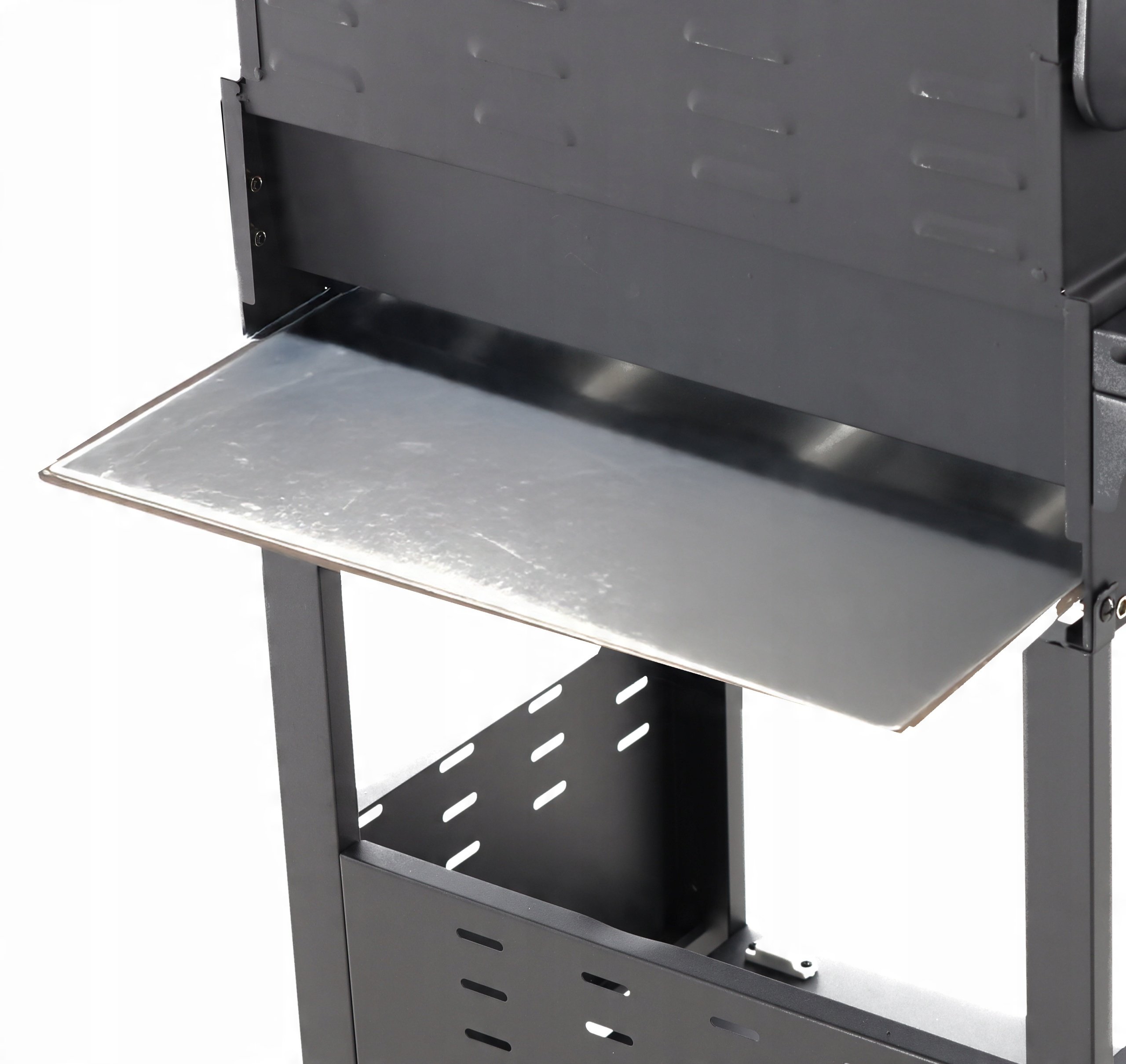 Mobilnost roštilja osigurana je s dva izdržljiva kotača koja omogućuju jednostavno premještanje po terasi ili vrtu. Kada roštilj ne koristite, možete ga zahvaljujući sklopivim bočnim policama lako spremiti i u manji prostor. Te police pružaju praktičnu odlagališnu površinu za pribor, začine ili tanjure za posluživanje, što doprinosi bolje organiziranom tijeku pečenja. Svaki detalj kod modela BBQ8090 osmišljen je s mislima na korisnika – od stabilne konstrukcije do intuitivnog upravljanja regulatorima plamena.