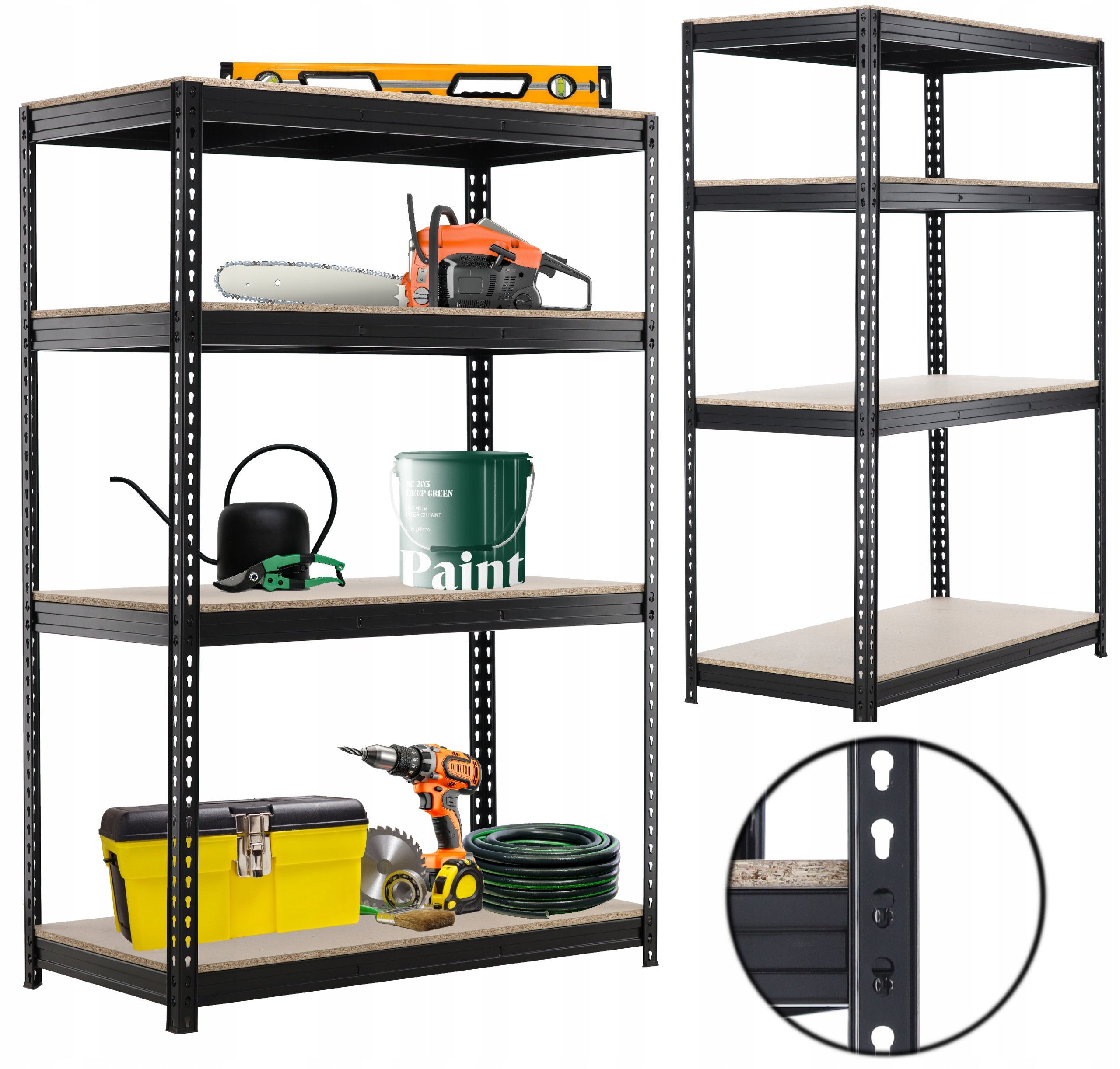 Iako je dizajniran prvenstveno za industriju i skladišta, regal 4-nivojski Chomik pro izvrsno se pokazuje i u kućnoj garaži, podrumu ili radionici. Njegova crna boja i čiste linije omogućuju da se lijepo uklopi u različita okruženja, bez obzira radi li se o profesionalnoj opremi ili djelomično vidljivom skladišnom prostoru. Zahvaljujući prilagodljivoj konstrukciji, police se po potrebi mogu premještati po visini, što omogućuje optimalno iskorištavanje prostora prema veličini pohranjenih predmeta. Tako na jednoj polici možete držati manje kutije, a na drugoj veće predmete ili alat.