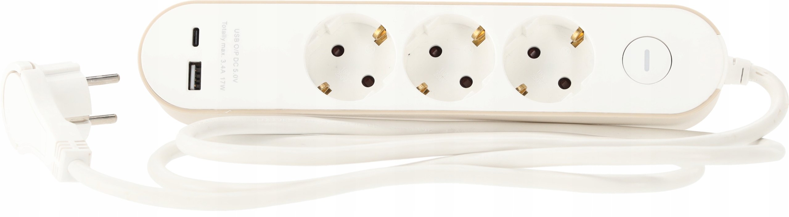 Utičnice Schuko (16 A, 250 V) podržavaju maksimalnu ukupnu snagu do 3680 W, što omogućuje sigurno priključenje uređaja s većom potrošnjom energije, poput grijalica, usisavača ili kuhinjskih aparata. Osim klasičnih utičnica, razdjelnik ima i dva USB izlaza – jedan klasični USB-A i jedan moderni USB-C – s izlaznom snagom 5 V/3,4 A (17 W). Tako možete puniti pametne telefone, tablete ili druge mobilne uređaje bez potrebe za dodatnim punjačem.