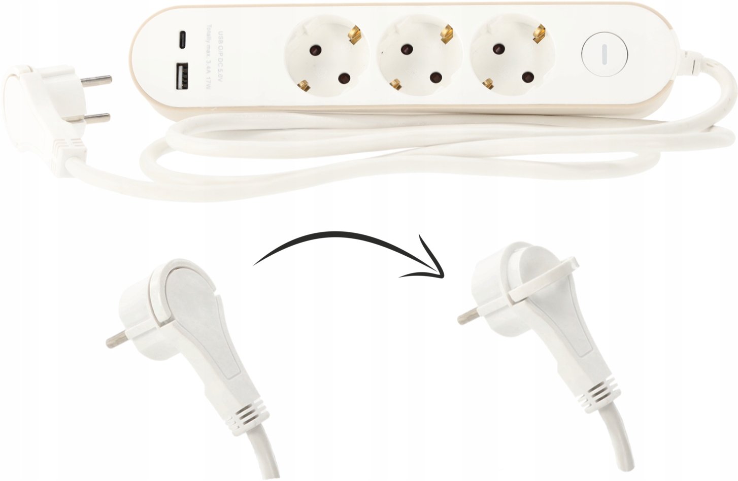 Bijela boja razdjelnika diskretno se uklapa u moderne unutarnje prostore – od kućnih ureda do dnevnih soba ili spavaonica. Zahvaljujući plosnatom utikaču, lako ga možete priključiti i iza namještaja ili na mjestima s ograničenim prostorom. Ergonomski oblikovan prekidač omogućuje jednostavno upravljanje, a indikatorsko svjetlo jasno pokazuje kada je razdjelnik pod naponom.
