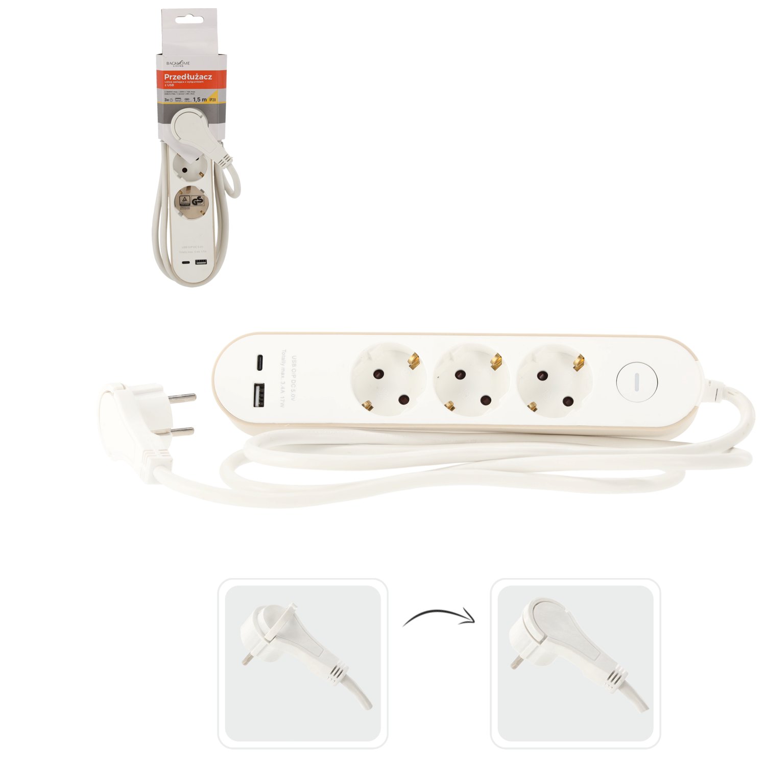 Ovaj kvalitetan razdjelnik električne energije dizajniran je za sigurnu i praktičnu upotrebu u kućanstvu, uredu ili radionici. S tri utičnice tipa Schuko i dva dodatna USB priključka omogućuje jednostavno napajanje različitih uređaja – od računala i televizora do pametnih telefona i tableta. Proizvod je izrađen u tvornici Chomik u Poljskoj, što jamči provjerenu europsku kvalitetu i usklađenost sa sigurnosnim standardima.