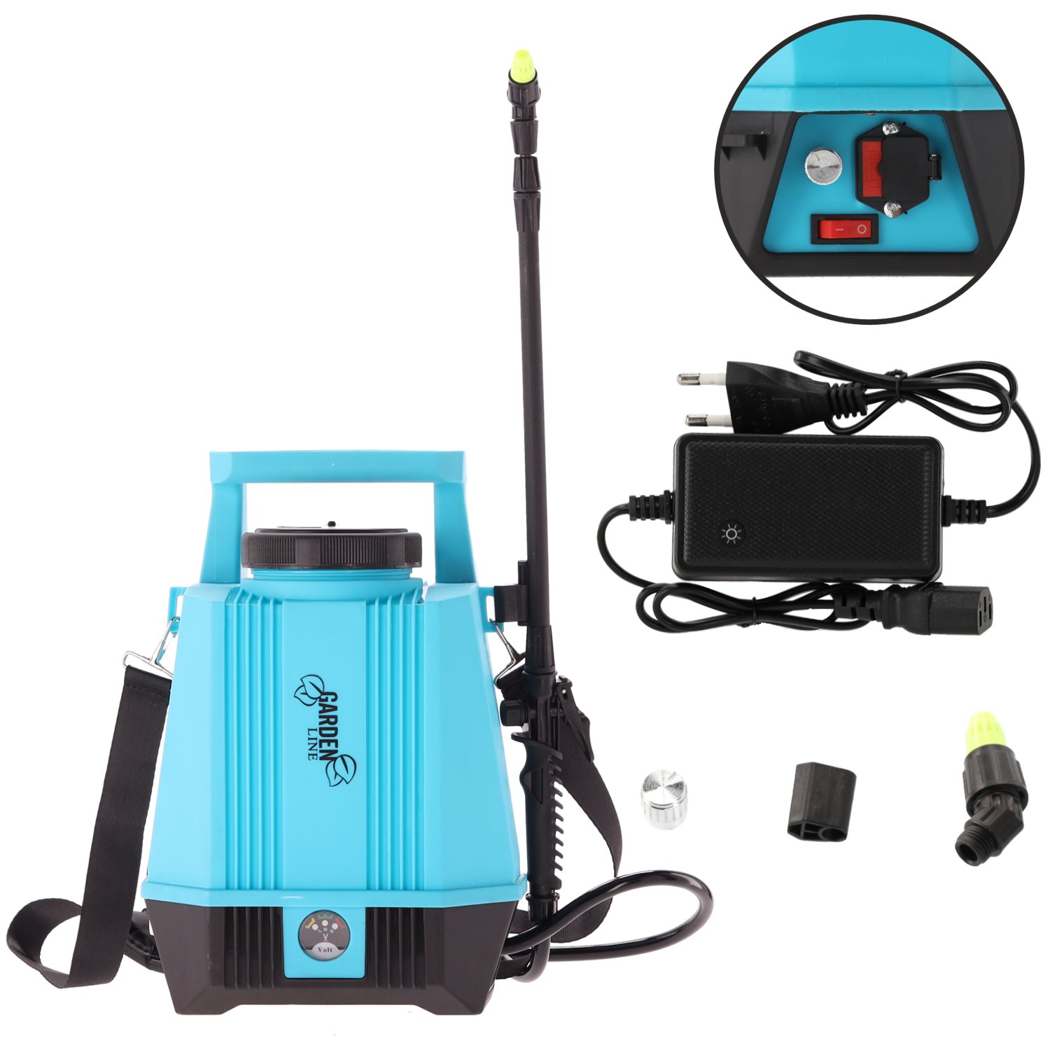 Ugrađeni olovno‑kiselinski akumulator 12 V 1,3 Ah puni se priloženim punjačem s izlaznom strujom od 400 mAh. Punjenje se odvija jednostavno – akumulator se priključi na punjač koji se poveže na električnu mrežu. Preporučuje se redovito punjenje akumulatora nakon svake uporabe kako bi se održala optimalna učinkovitost i vijek trajanja baterije. Uređaj ne zahtijeva posebno održavanje, dovoljno je redovito čišćenje spremnika i mlaznice nakon uporabe te provjera brtvi kako ne bi došlo do istjecanja tekućine.