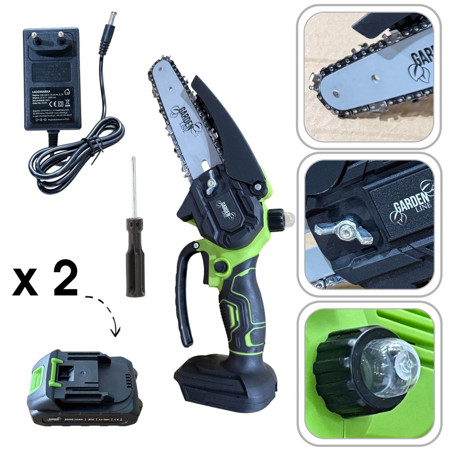 Kompaktna, ali iznimno snažna pila dizajnirana je za brzo, čisto i sigurno obrezivanje grana te redovito održavanje oko kuće i vrta. S kombinacijom četkastog motora snage 600 W, brzinom lanca od 8 m/s i dviju priloženih baterija od 1500 mAh omogućuje neprekidan rad bez ograničenja kabela ili potrebe za električnim priključkom. Chomik, poznati poljski brend, u ovom je modelu spojio promišljenu ergonomiju, učinkovitost i prenosivost koju očekuje svaki suvremeni korisnik vrtnog alata.