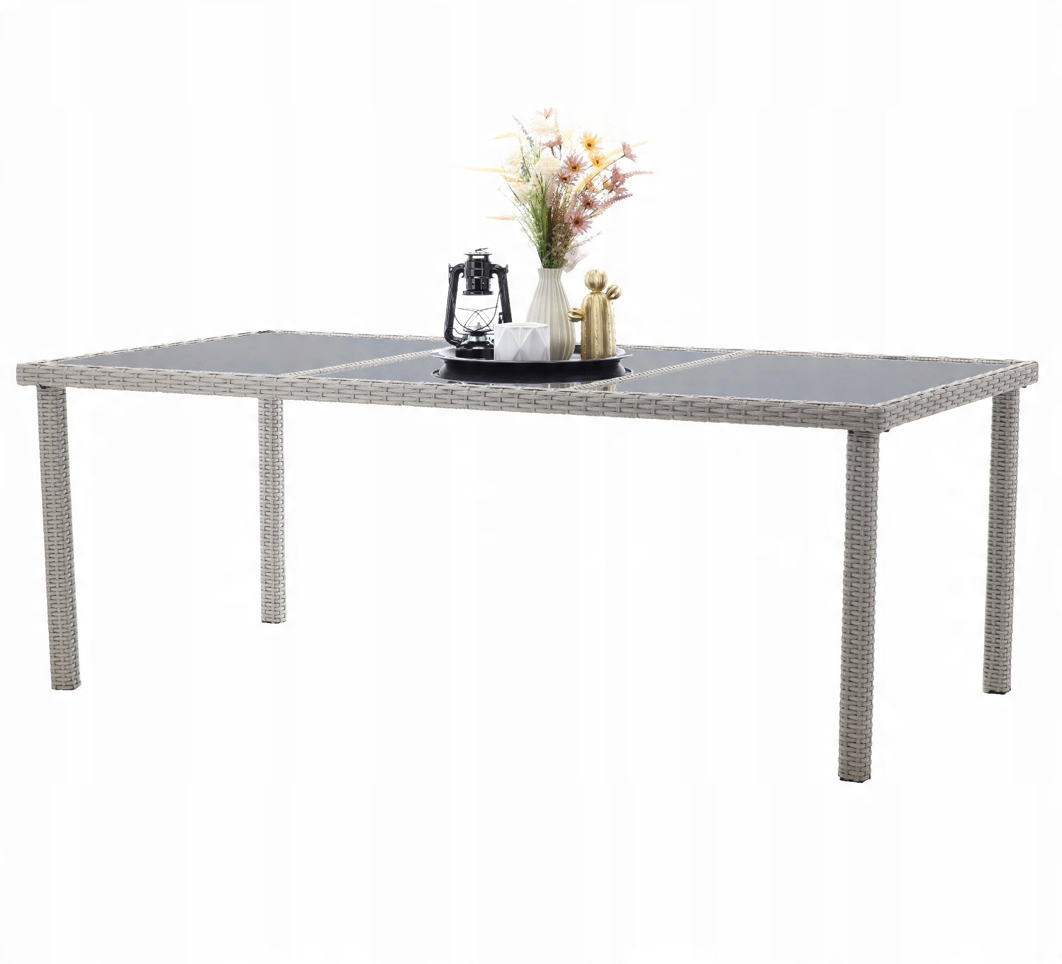 Ovaj sivo obojen komplet vrtnog namještaja Chomik, koji uključuje osam udobnih stolica i prostrani stol s kaljenom staklenom pločom debljine 5 mm, spaja eleganciju, funkcionalnost i iznimnu izdržljivost. Stvoren je za one koji žele u svom vrtu, na terasi ili balkonu uživati u udobnosti domaćeg blagovaonskog prostora na otvorenom. Kombinacija ratana i pocinčanog čelika osigurava stabilnost, otpornost na vremenske uvjete te moderan izgled, koji se lijepo uklapa u različite vanjske ambijente – od klasičnih do minimalističkih.