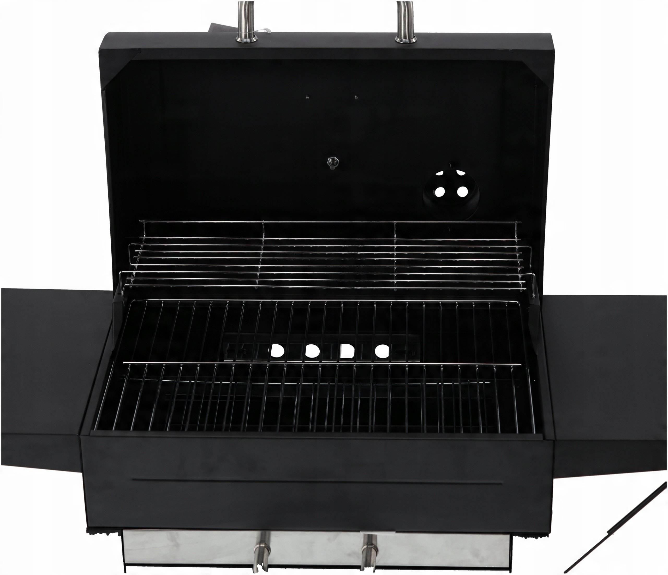 U poklopac je ugrađen termometar koji mjeri temperaturu do 300 °C. Ova funkcionalnost omogućuje preciznu kontrolu nad procesom pečenja, što je ključno pri pripremi različitih vrsta hrane. Ugrađeni sakupljač pepela omogućuje jednostavno čišćenje nakon uporabe – pepeo jednostavno uklonite bez potrebe za rastavljanjem konstrukcije. Osim toga, u kućište je ugrađen i otvarač za boce, praktičan dodatak koji će dobro doći na svakom pikniku.