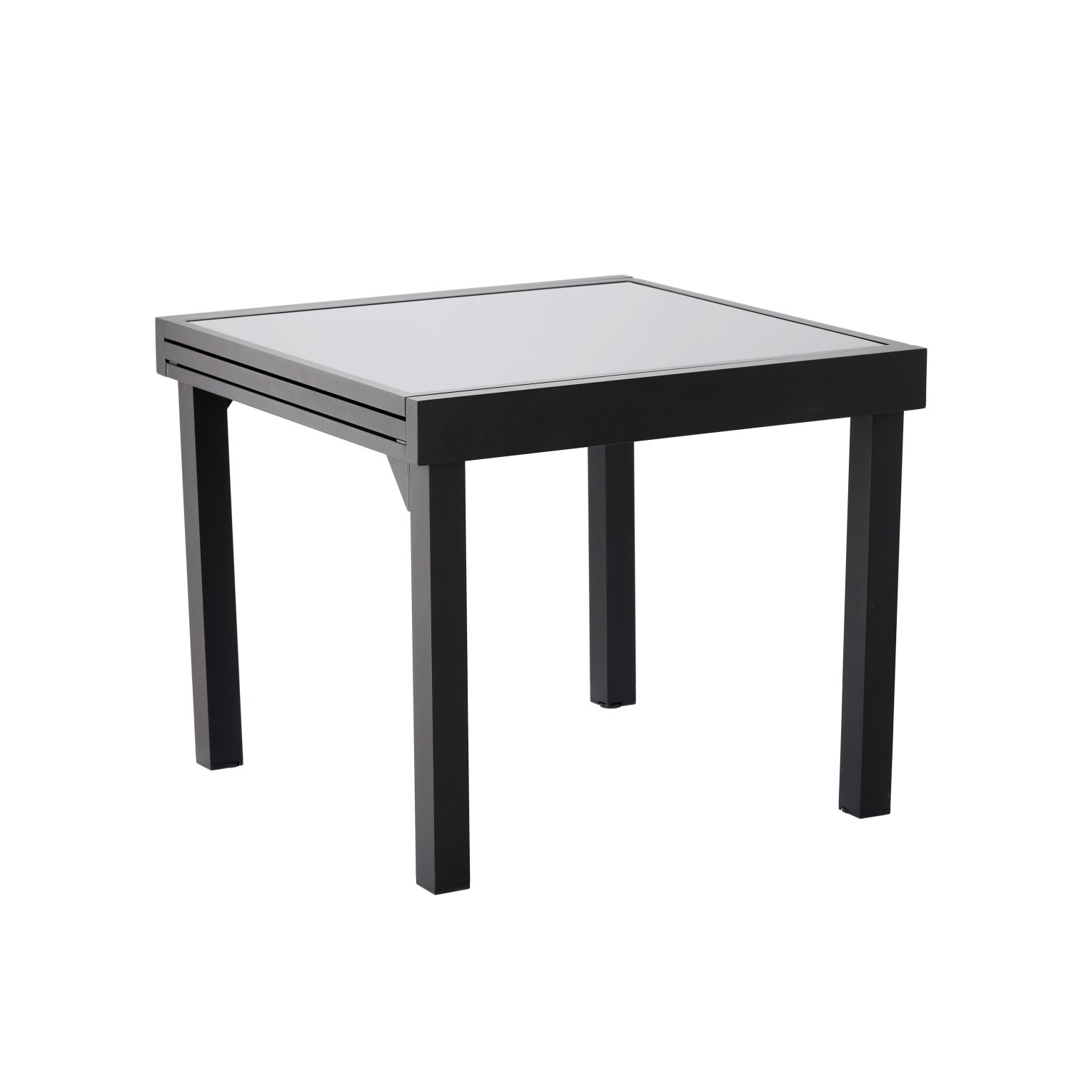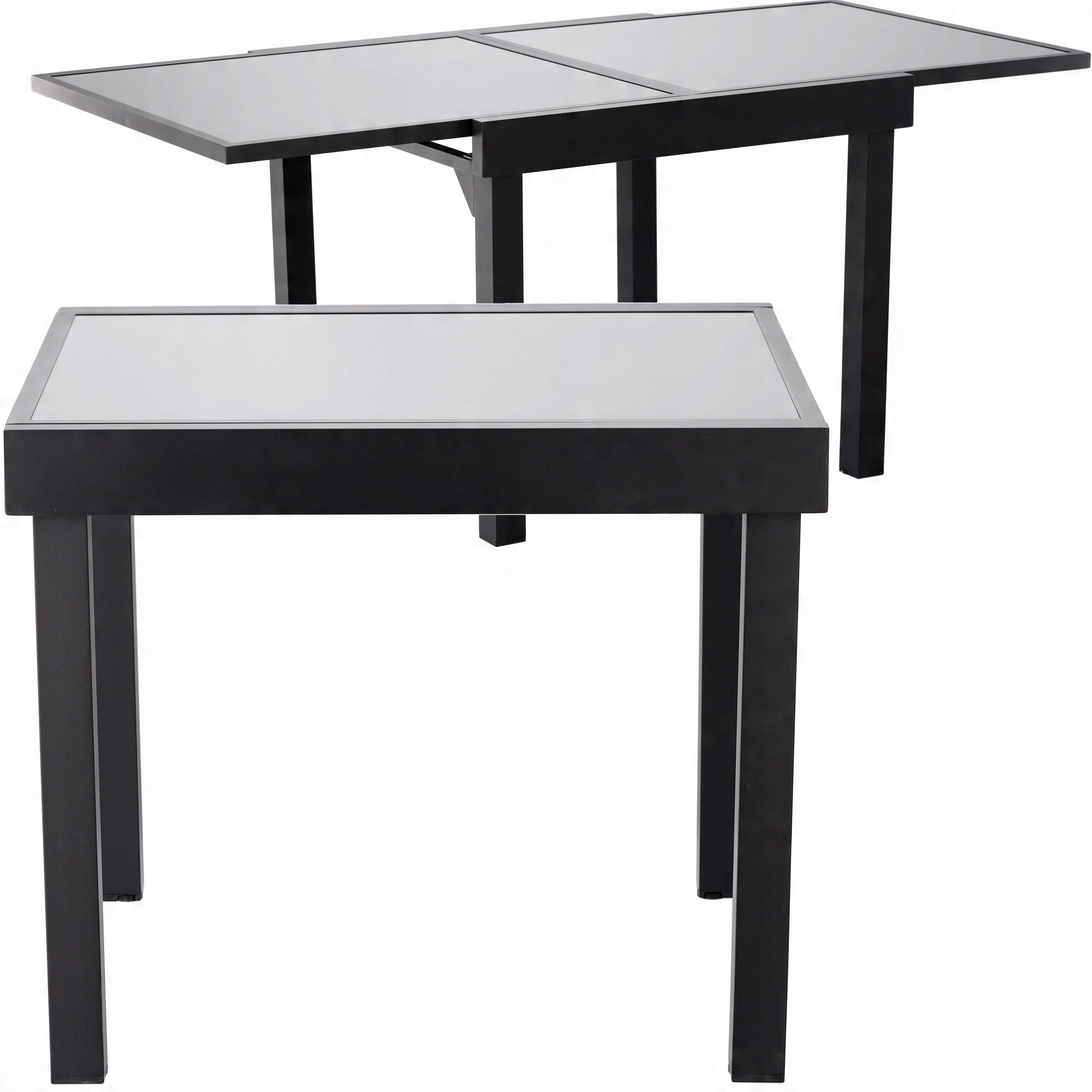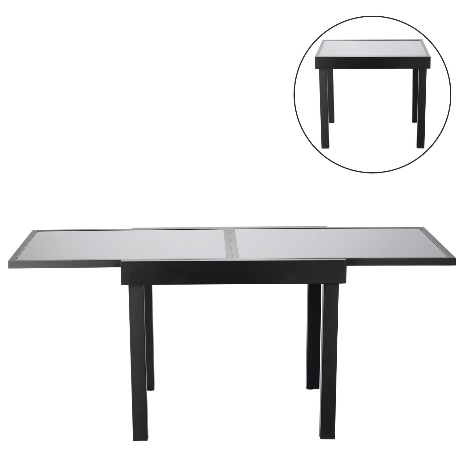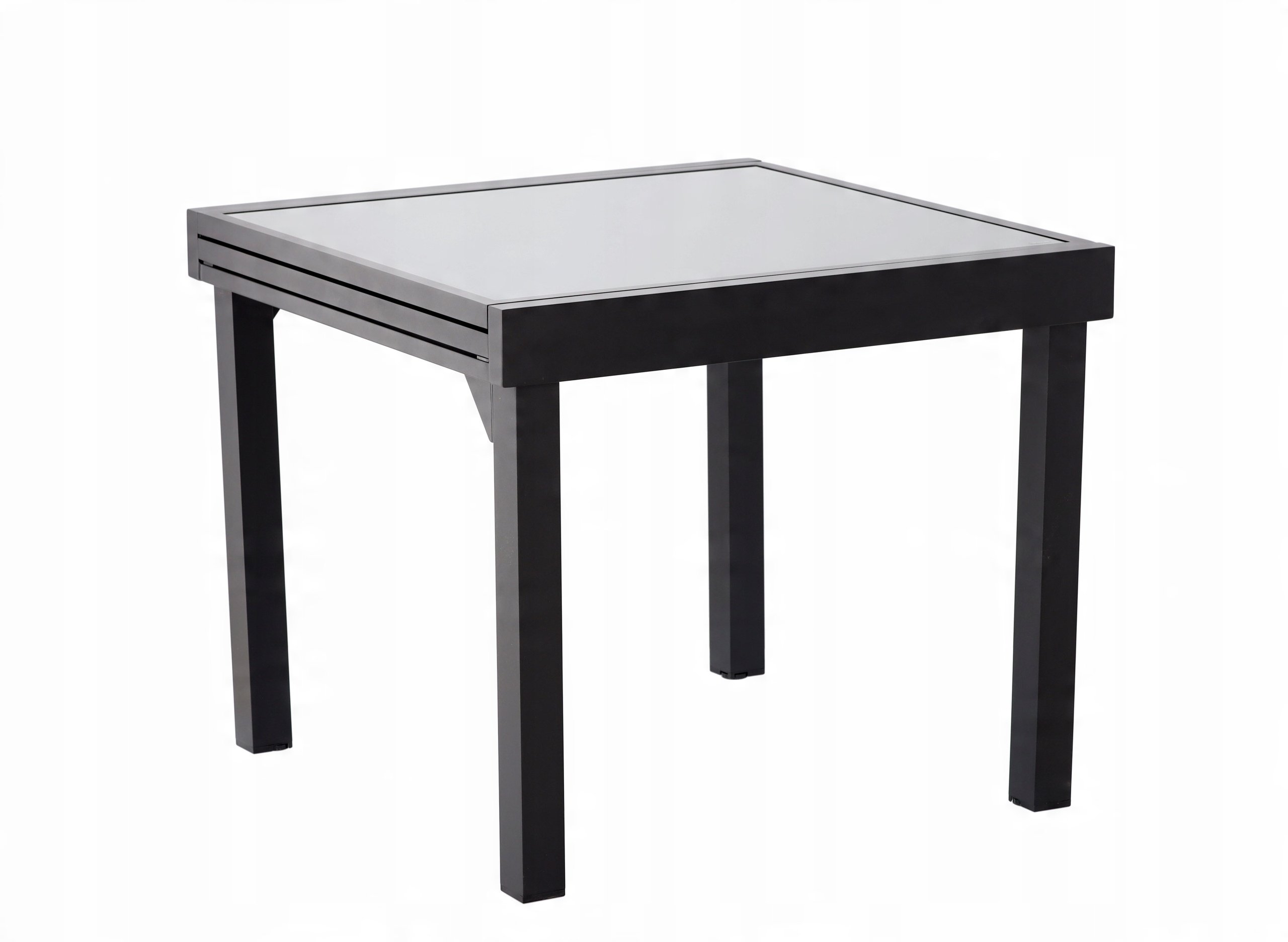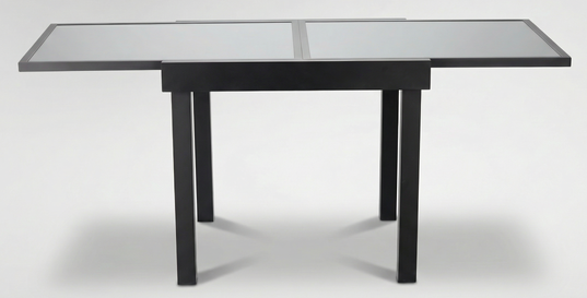 Elegantni vrtni stol u osnovnoj duljini 90 cm i produženoj duljini do 180 cm nudi savršenu ravnotežu između funkcionalnosti i suvremenog izgleda. Izrađen je od izdržljivog aluminija, koji je zaštićen kvalitetnim praškastim premazom, te dopunjen pločom od sivog stakla, što mu daje bezvremenski i profinjen izgled, prikladan za svaki vanjski prostor – od kućne terase do hotelskog vrta ili restoranskog atrija.