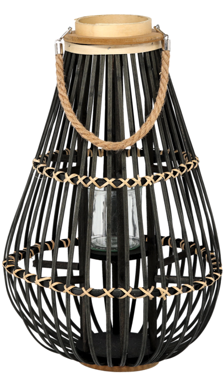 Drveni lampion sa staklenim umetkom - crni - ILS9623 5032612