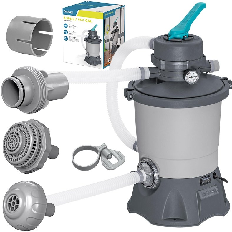 Srce sustava predstavlja pijesak, koji je prirodan, ekološki i iznimno učinkovit filtracijski medij. Čestice pijeska hvataju nečistoće, alge i sitne čestice koje se nakupljaju u vodi, tako da iz vašeg bazena uklanjaju sve što bi moglo utjecati na kvalitetu vode. U usporedbi s ulošcima s filtrom, pijesak je cjenovno povoljniji i potrebno ga je mijenjati samo jednom po sezoni, što znači manje održavanja i niže troškove upotrebe. Uređaj radi tiho i pouzdano, pa se možete bezbrižno posvetiti uživanju u vodi dok filter obavlja svoj posao.