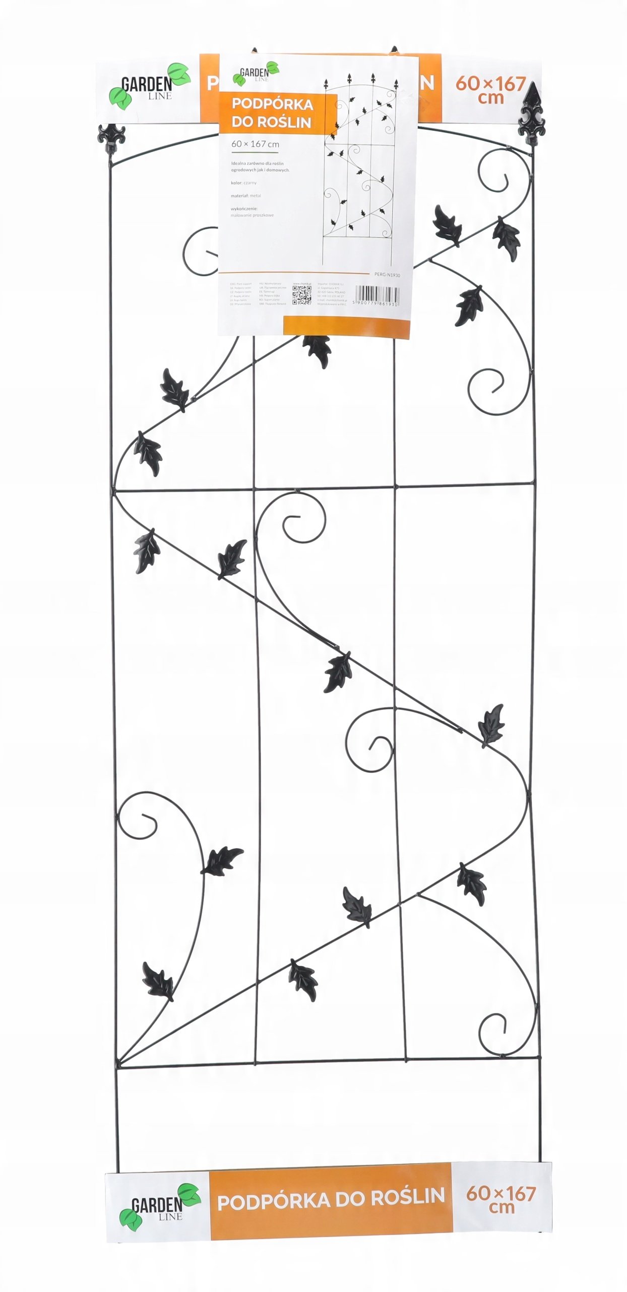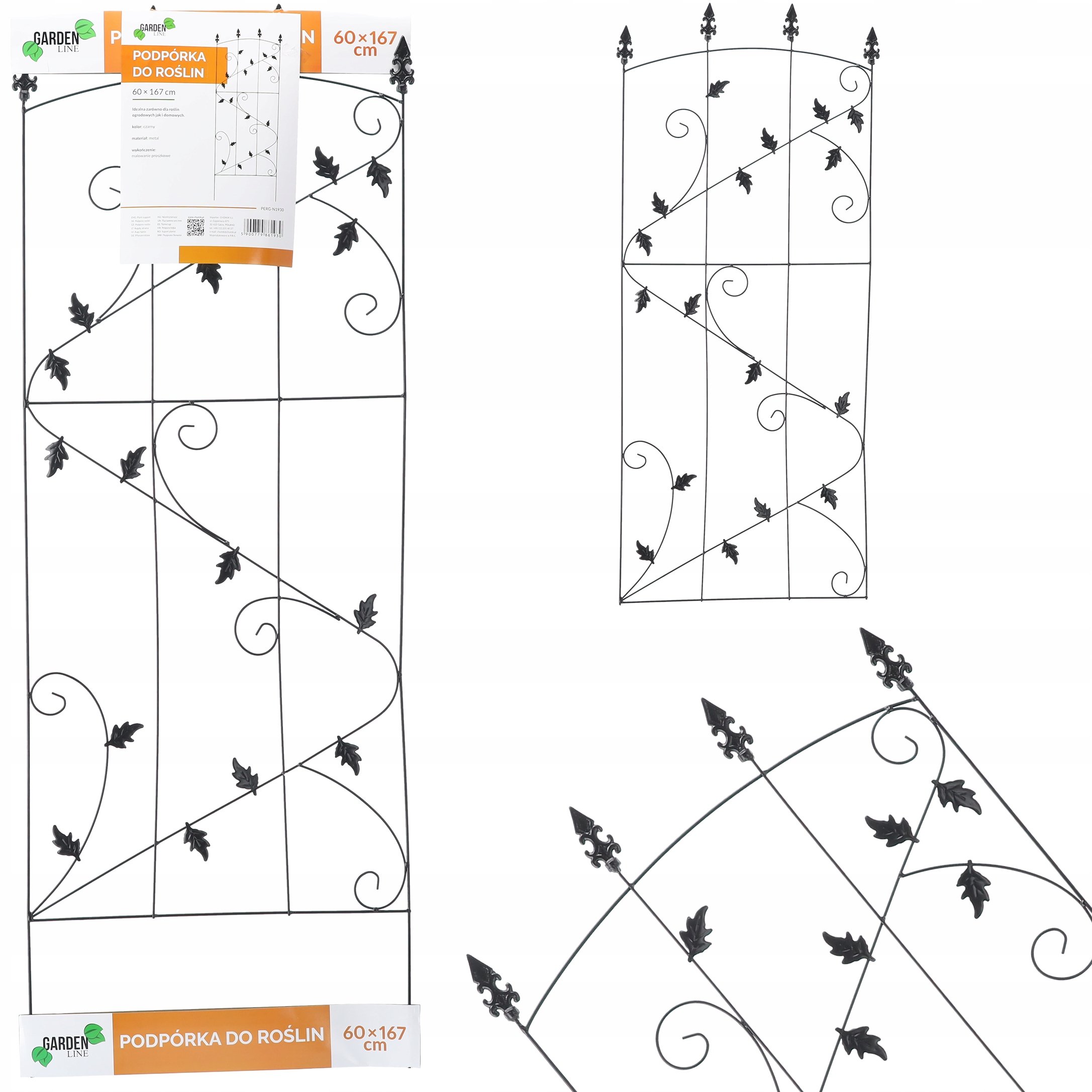Elegantna i istodobno funkcionalna potpora za biljke u crnoj boji izrađena je od izdržljivog metala, koji osigurava stabilnost i dug vijek trajanja. Model PERG-N1930 dizajniran je tako da omogućuje pouzdanu potporu različitim vrstama penjačica, a svojim dekorativnim izgledom pridonosi uređenom i estetski dovršenom izgledu vrta, balkona ili terase. Metalna konstrukcija je robusna, otporna na vremenske uvjete i jednostavna za postavljanje u zemlju ili cvjetni lonac.