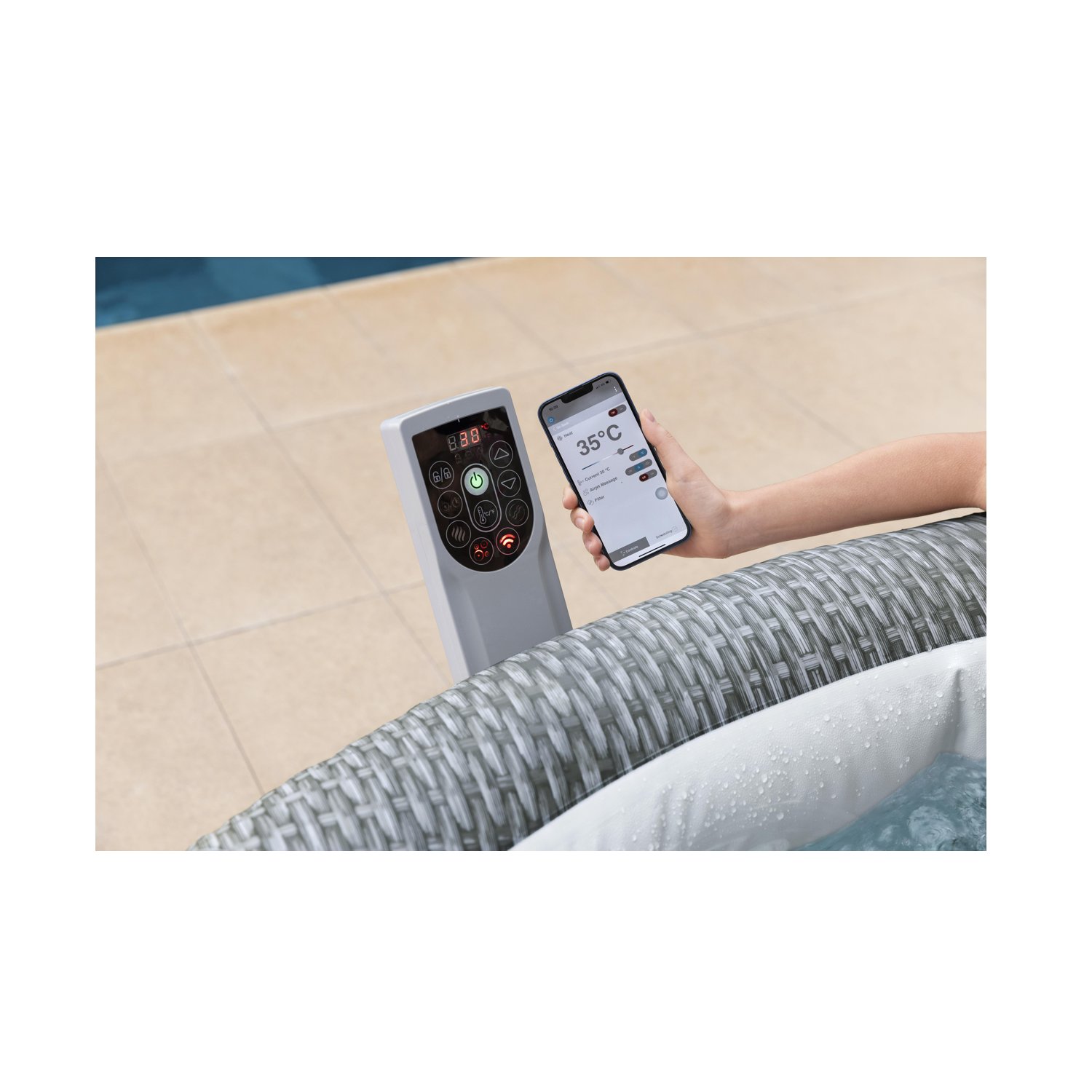 Jacuzzi Lay-Z-Spa Bali AirJet je udoban masažni bazen za 4–6 osoba, koji osigurava iznimno opuštanje zahvaljujući tehnologiji AirJet™. Kada je napuhan, mjeri 196 cm x 71 cm, a unutarnja veličina je 151 cm, što pruža dovoljno prostora za ugodno opuštanje. Voda se zagrijava do najviše 40 °C, a energetski učinkovit sustav grijanja održava optimalnu temperaturu vode tijekom cijelog rada.