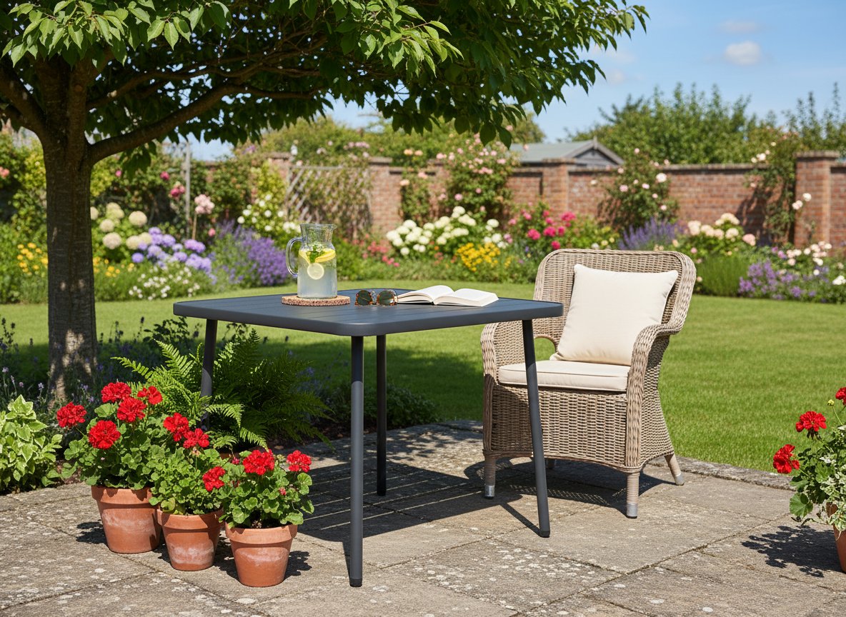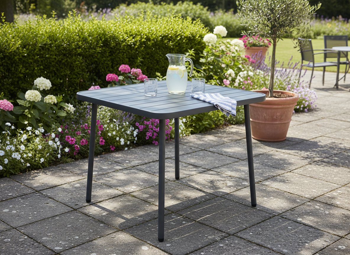 Tamnosivi kvadratni vrtni stol 80×80 cm praktično je i elegantno središte vaše zone za opuštanje. Nudi udobno korištenje, izdržljivost te mogućnost proširenja dodatnim elementima. Kupnjom dobivate kvalitetan komad namještaja koji će vam služiti više sezona i naglasiti karakter vašeg vrta.