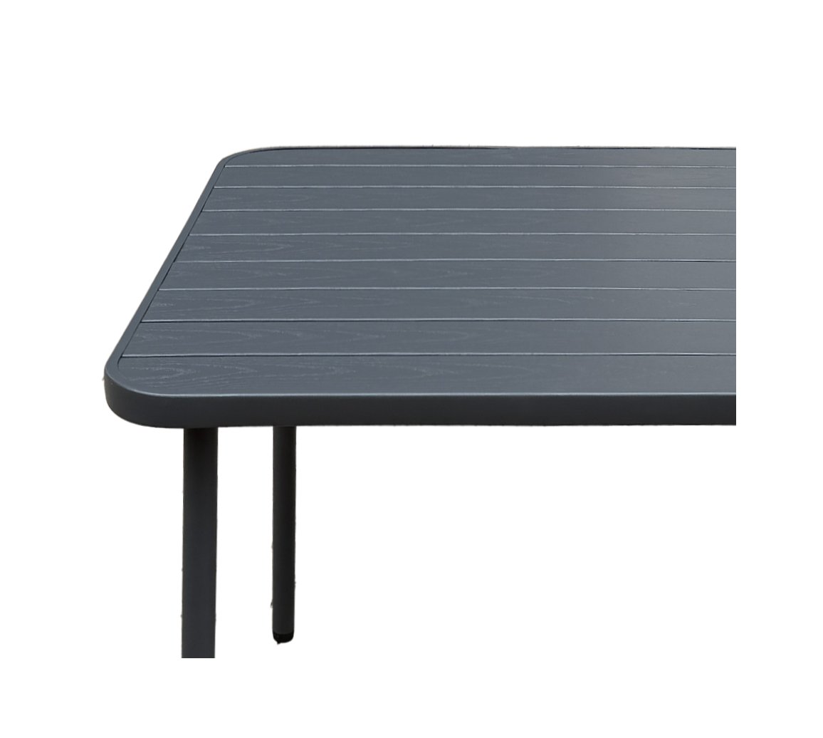 Stvorite elegantno i funkcionalno zonu za opuštanje u svom vrtu, na terasi ili balkonu. Kvadratni vrtni stol u klasično sivoj boji spaja čvrstu konstrukciju, bezvremenski dizajn i praktičnost, koja se izvrsno pokazuje i pri svakodnevnom odmoru i pri druženjima s bližnjima. Metalna ploča od željeznih letvica daje mu elegantan karakter i osigurava dugotrajnu postojanost.