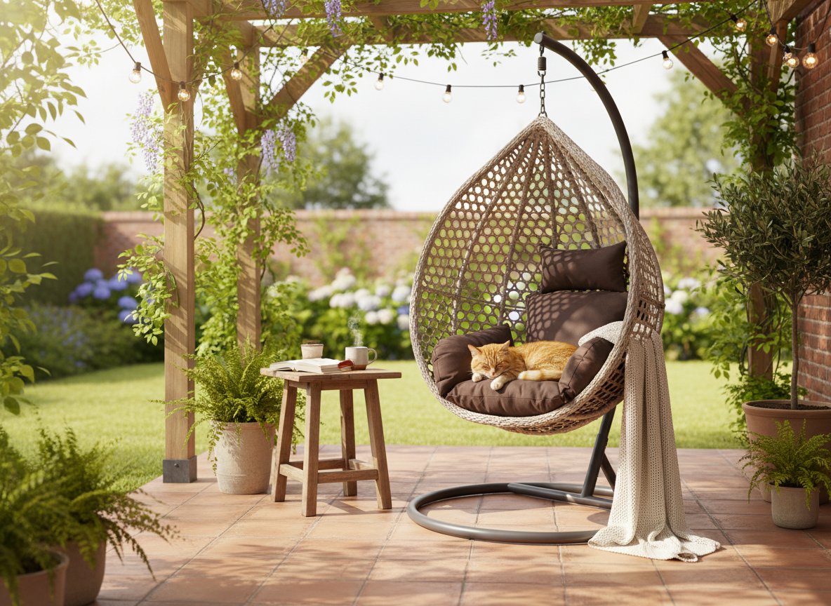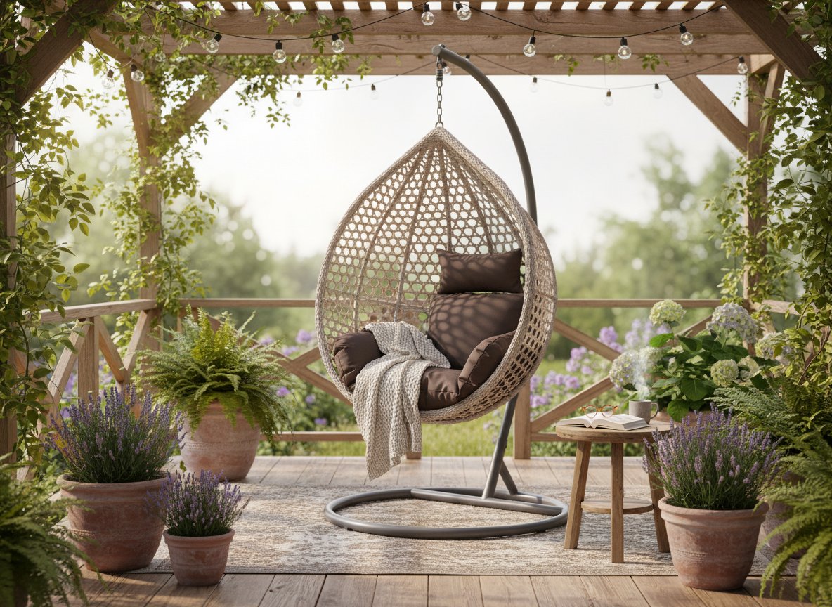Minimalističan, elegantan i iznimno udoban – sivi viseći naslonjač odličan je izbor za ljubitelje smirenog dizajna. Zbog svoje monokromatske sheme boja savršeno se uklapa u svako okruženje – od suvremene terase do skandinavski nadahnutog unutarnjeg prostora. Set uključuje košaru i jastuk u sivim tonovima te tamnosivi, stabilni okvir. To je savršen prostor za opuštanje koji spaja estetiku i udobnost.