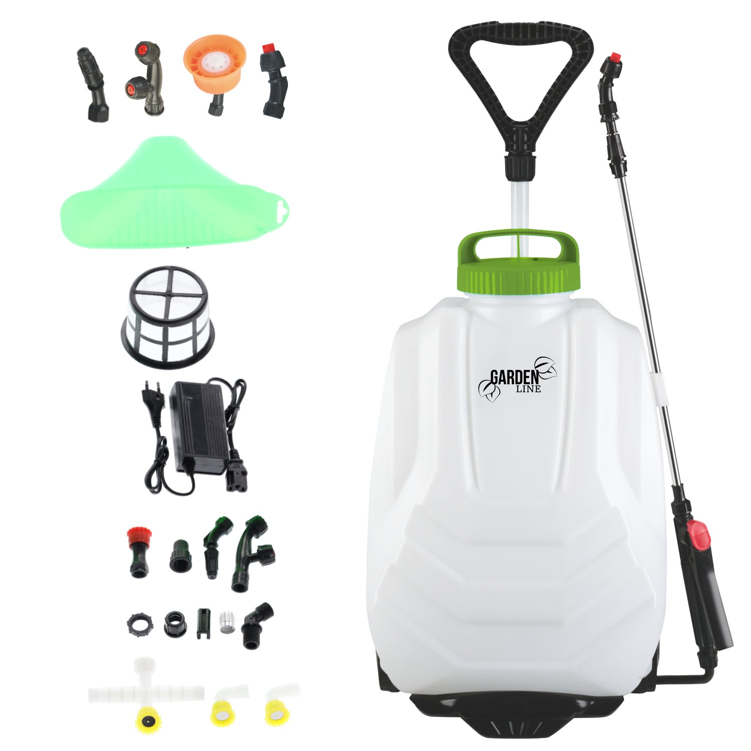 HDPE spremnik se lako čisti i otporan je na većinu poljoprivrednih pripravaka. Zahvaljujući glatkim unutarnjim stijenkama ostaci tekućina se ne zadržavaju, što produžuje vijek trajanja uređaja. Olovno‑kiselinski akumulator omogućuje stabilno napajanje i zaštićen je u kućištu koje sprječava kontakt s vlagom. Regulator tlaka korisniku nudi potpunu kontrolu nad protokom, što smanjuje potrošnju tekućine i sprječava prekomjerno prskanje.