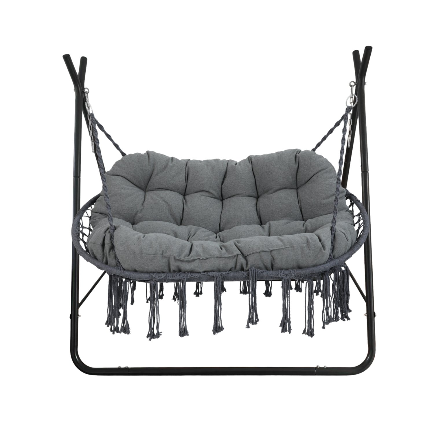 Vrijeme je za opuštanje u iznimnom stilu! Viseća hammock stolica Poly donosi udobnost za dvije osobe i eleganciju u nijansama antracita. Idealna je za terasu, balkon ili vrt – stvorite svoju osobnu chill-out oazu.