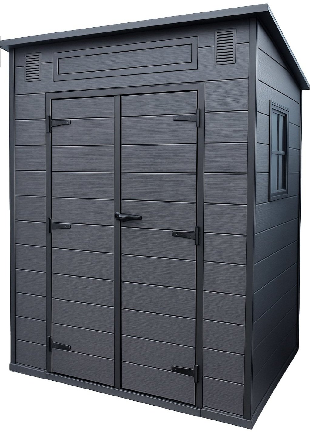 S ukupnim dimenzijama 181×130×200 cm šupa nudi dovoljno prostora za pohranu različitih predmeta – od alata i kosilica do ukrasnih posuda i vrtnih pomagala. Tlocrtna površina 170,5×119,5 cm omogućuje racionalan raspored unutrašnjosti, tako da je sve pri ruci, a istovremeno zaštićeno od vremenskih utjecaja. Dvokrilna vrata, velika 118×166,5 cm, otvaraju se široko i omogućuju jednostavan pristup, čak i kada želite spremiti veće predmete.