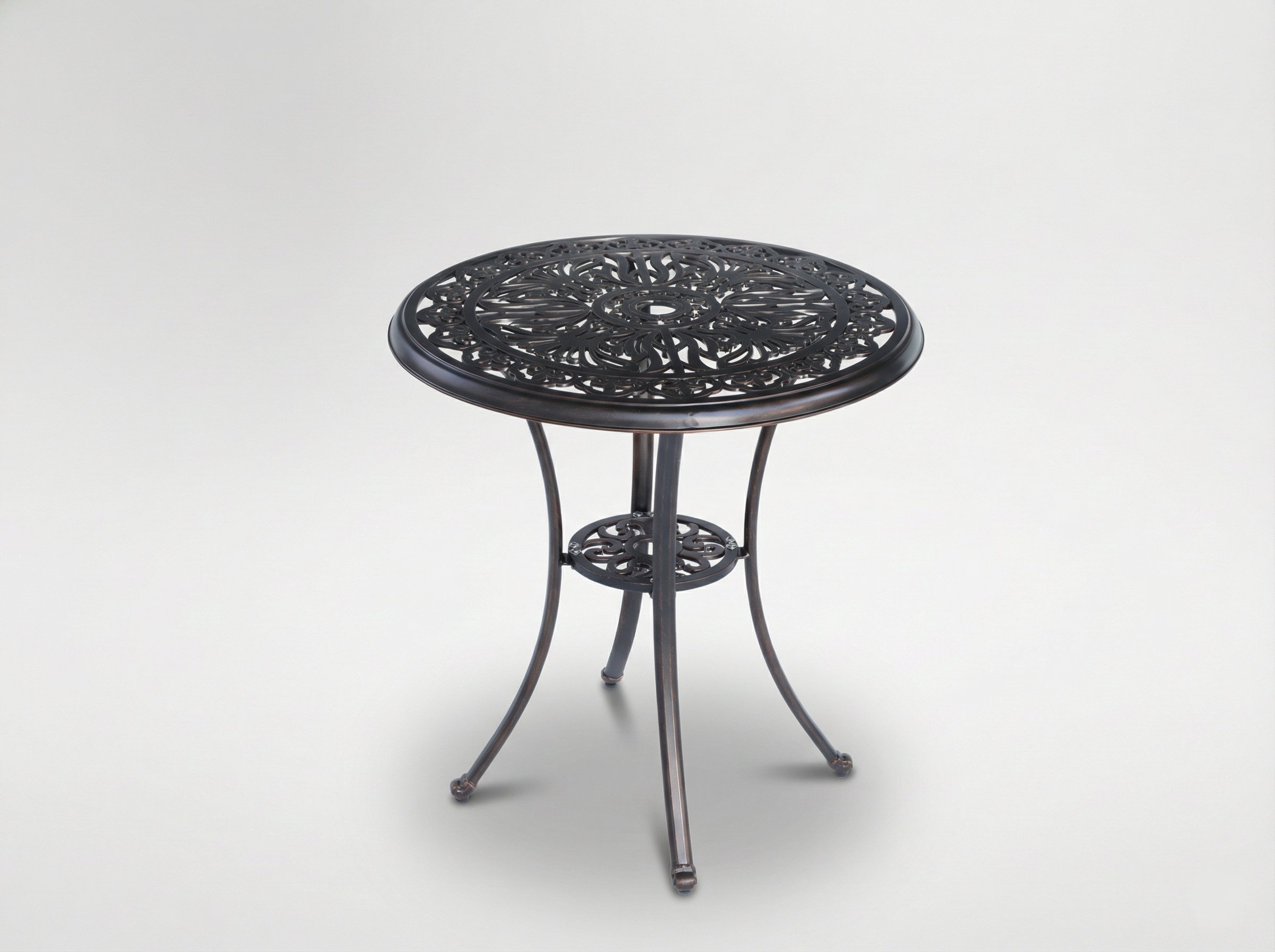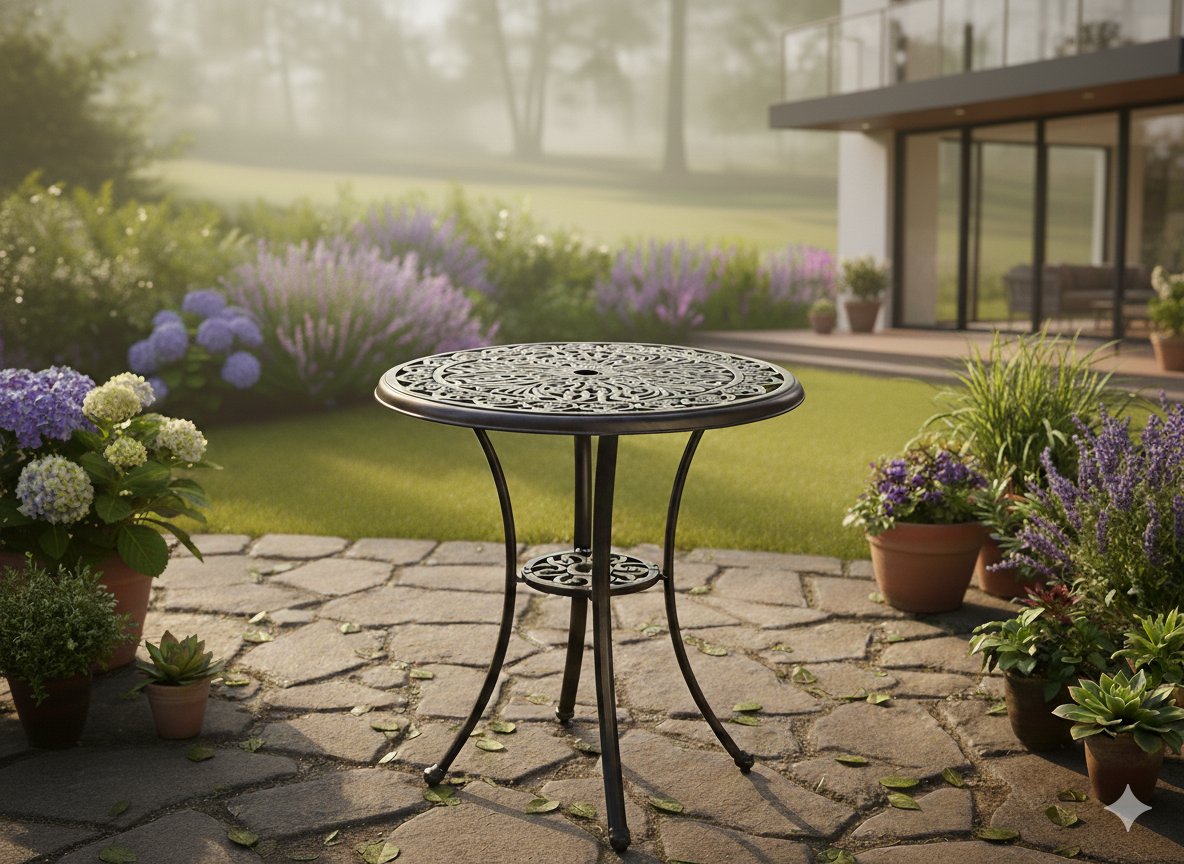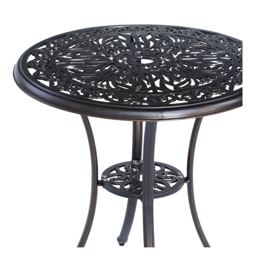 Elegantni okrugli vrtni stol Danbury spaja klasičan dizajn s modernom izdržljivošću. Izrađen je od punih aluminijskih odljevaka i dovršen u nijansi starinske bronce (crveni bakar), zato predstavlja izvanredan ukras vrta, terase ili balkona. Ažurna ploča daje mu lakoću i bezvremenski karakter, dok čvrsta konstrukcija osigurava udobnu upotrebu kroz brojne sezone.