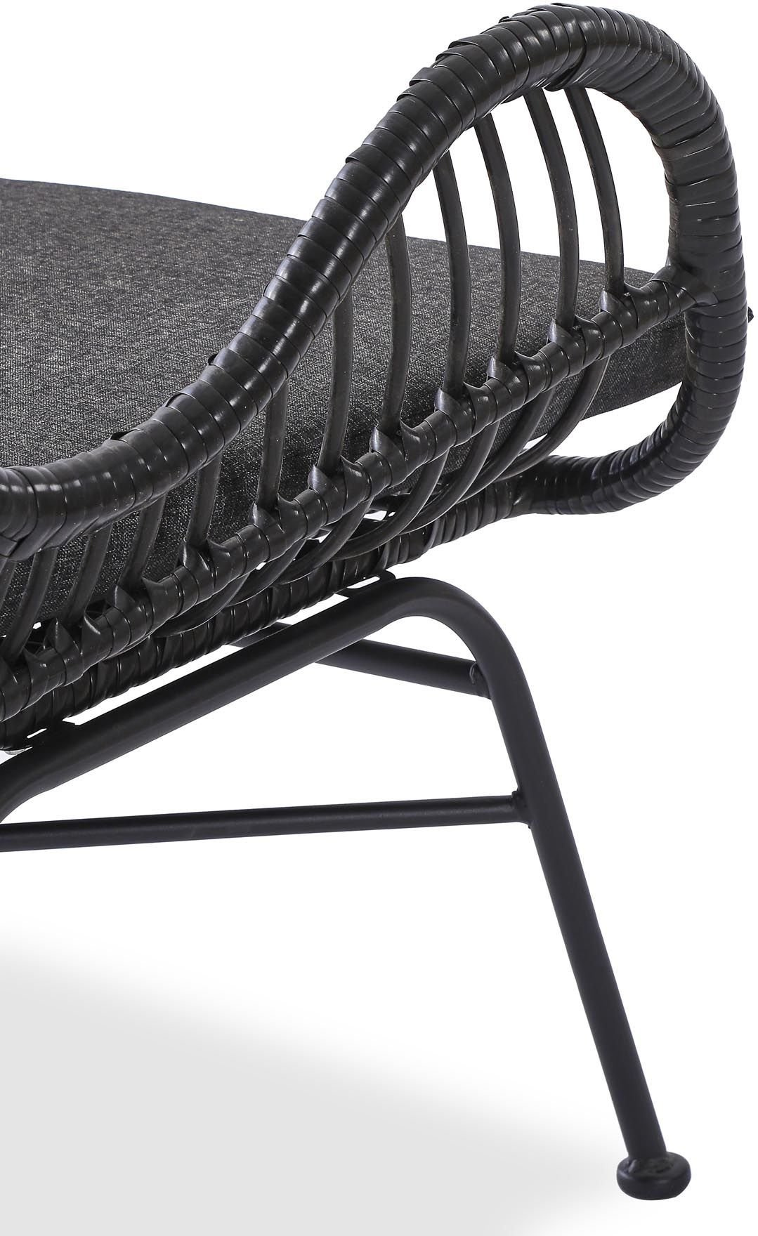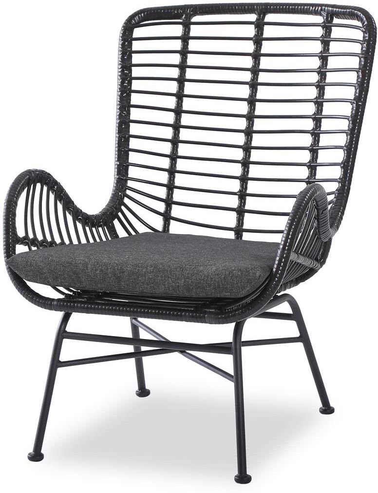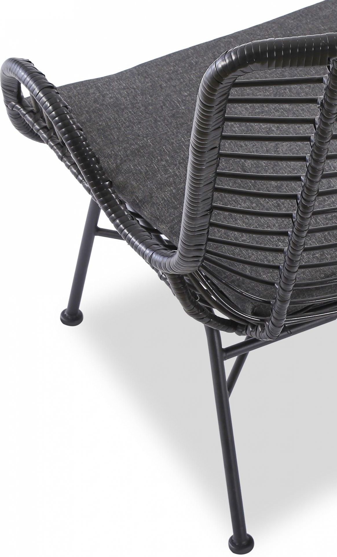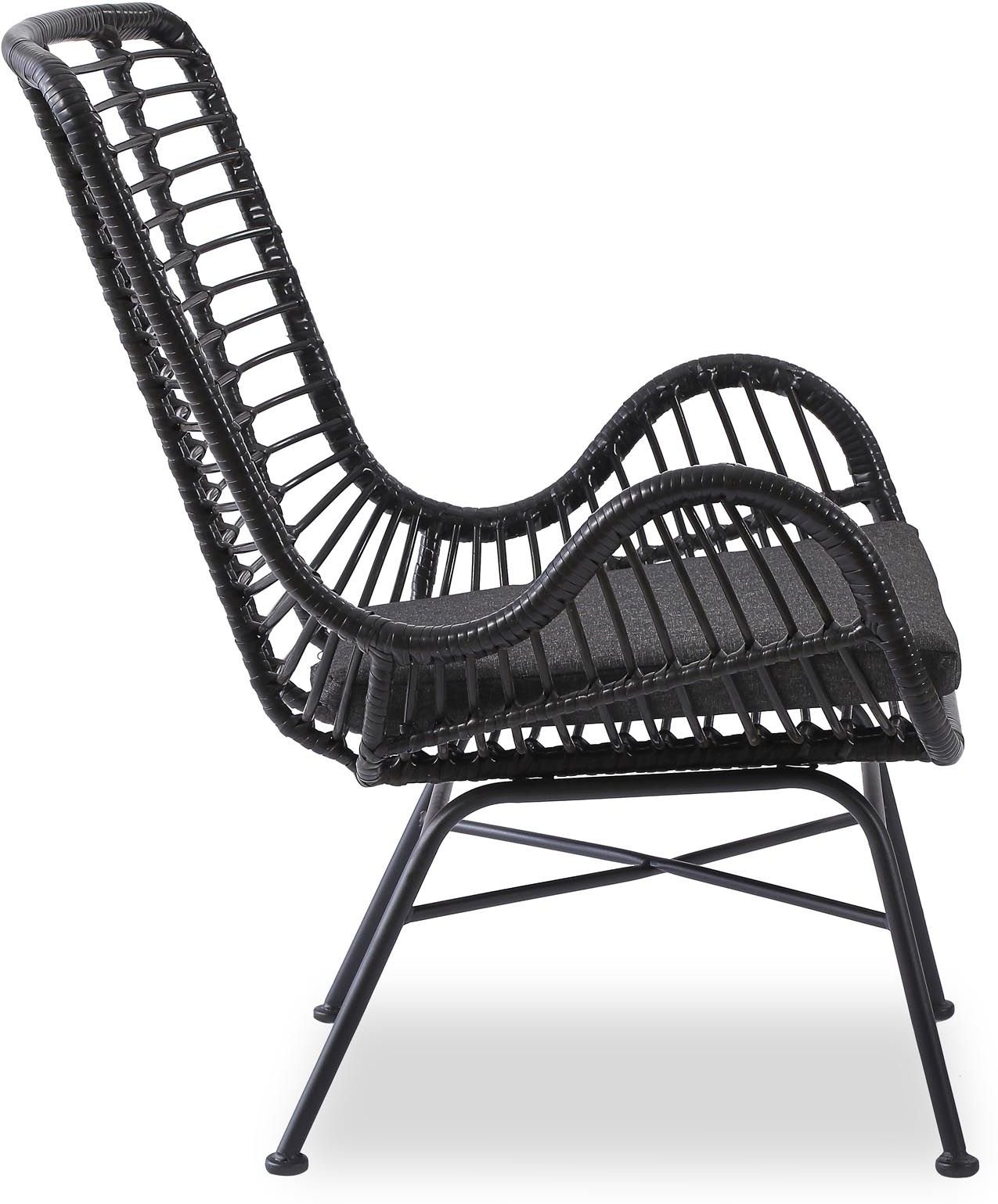 Fotelja Ikaro je idealna za opuštanje na terasi ili u modernim interijerima. Naslon i sjedište sa priloženim jastukom sive boje osiguravaju udobnost tijekom sjedenja. Fotelja ima četiri noge od lakiranog crnog čelika, a zahvaljujući čvrstoj i stabilnoj konstrukciji je sigurna za sjedenje. Ratan se odlikuje visokom otpornošću na sve vremenske uvjete, stoga je fotelja Ikaro idealan odabir za korištenje tijekom svih godišnjih doba i duge sate provedene s prijateljima uz kavu u prekrasnom prirodnom okruženju.