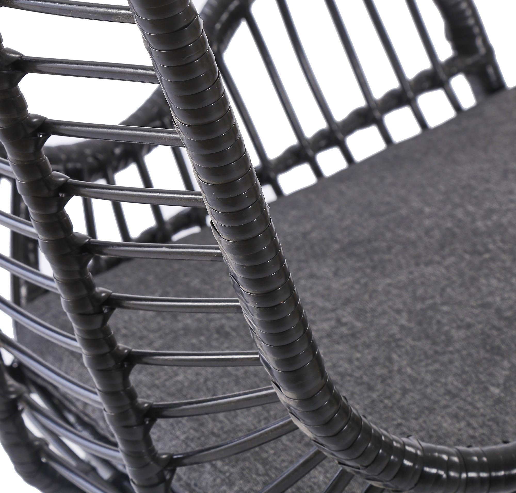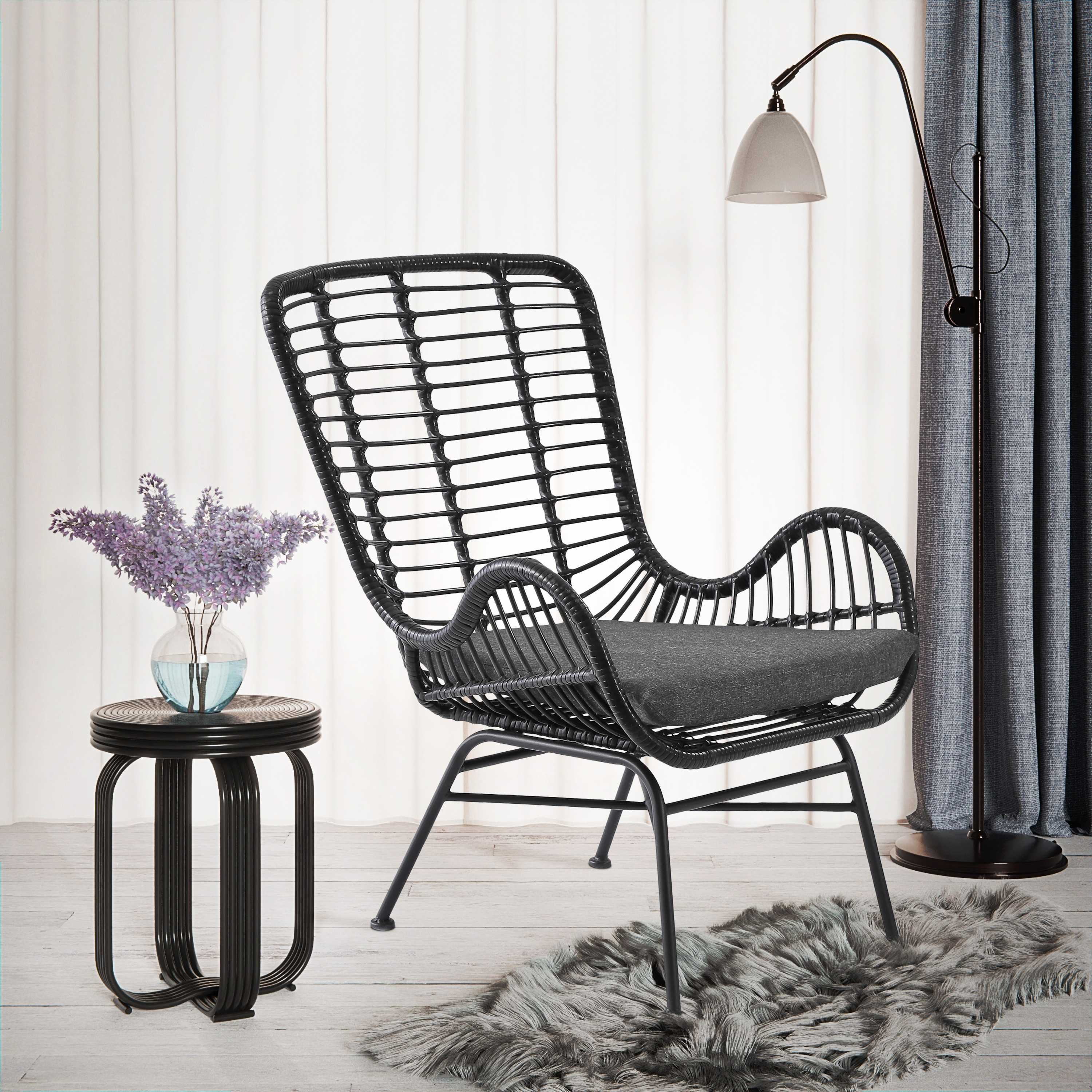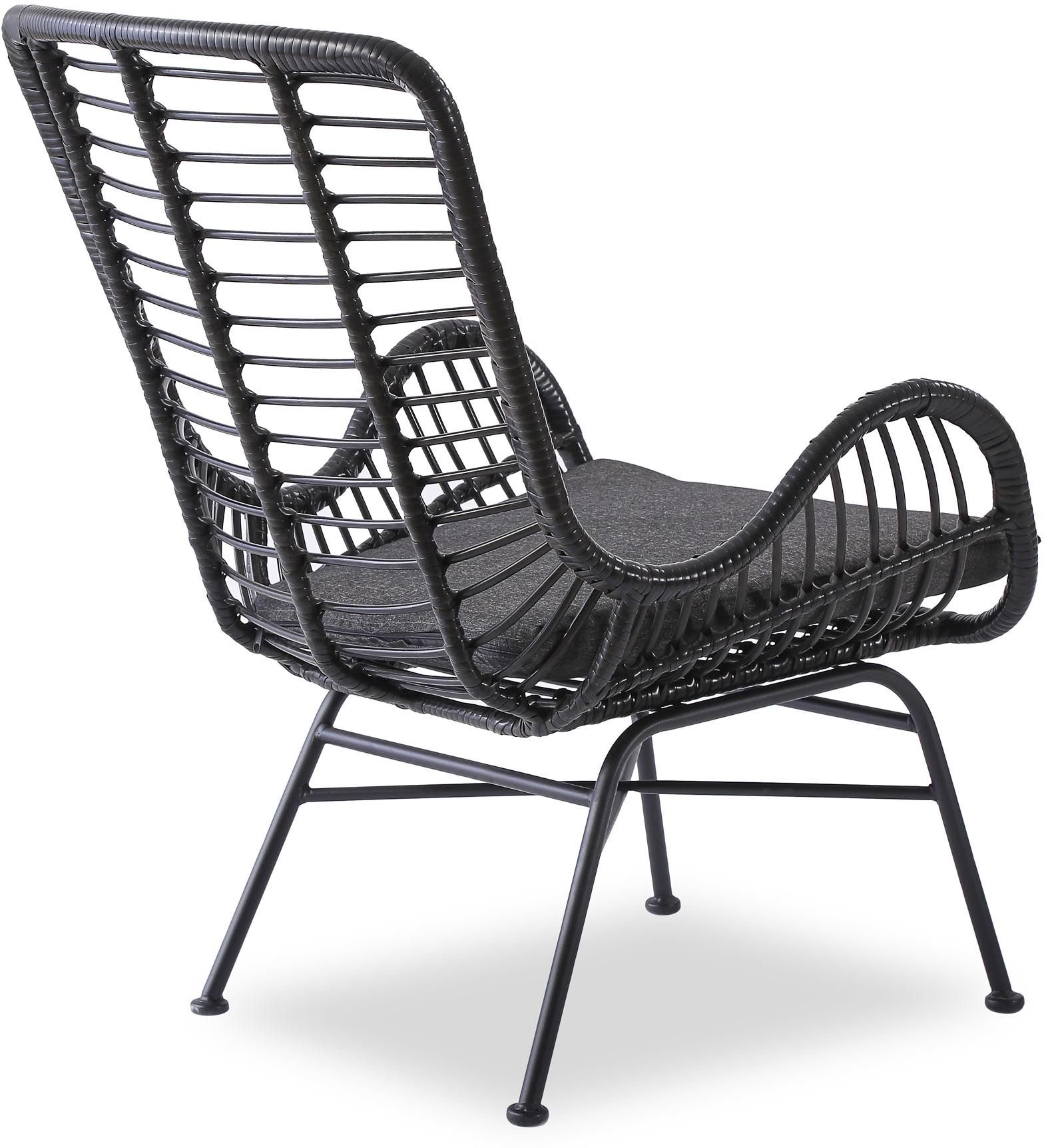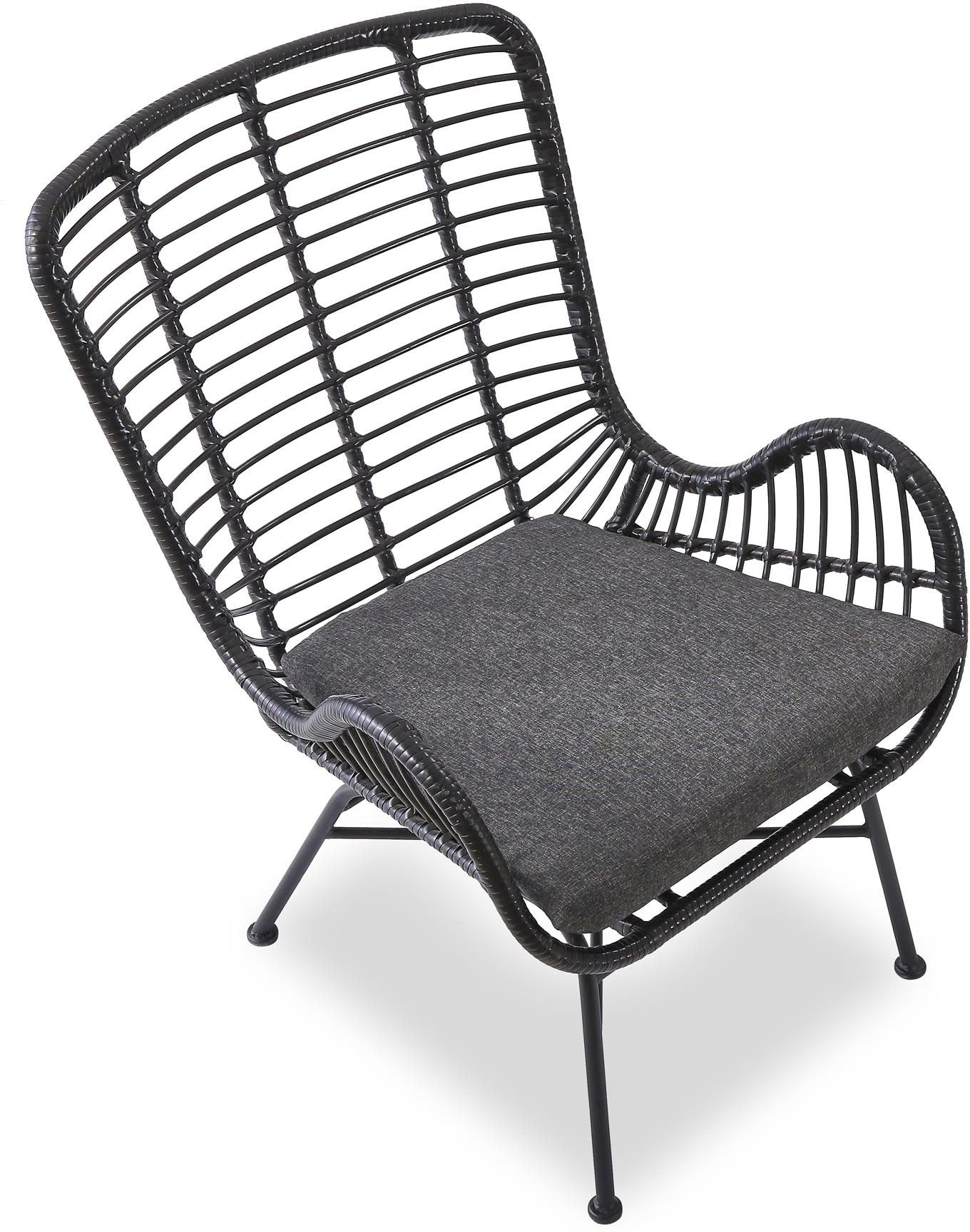 Fotelja Ikaro je idealna za opuštanje na terasi ili u modernim interijerima. Naslon i sjedište sa priloženim jastukom sive boje osiguravaju udobnost tijekom sjedenja. Fotelja ima četiri noge od lakiranog crnog čelika, a zahvaljujući čvrstoj i stabilnoj konstrukciji je sigurna za sjedenje. Ratan se odlikuje visokom otpornošću na sve vremenske uvjete, stoga je fotelja Ikaro idealan odabir za korištenje tijekom svih godišnjih doba i duge sate provedene s prijateljima uz kavu u prekrasnom prirodnom okruženju.