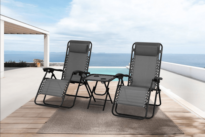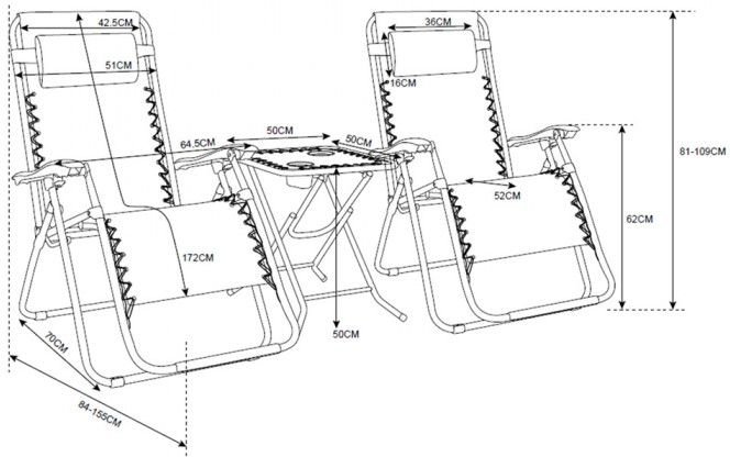Ovaj elegantan i praktičan set predstavlja savršeno rješenje za sve koji vole provoditi vrijeme na svježem zraku, bilo na terasi, vrtu ili balkonu. Dva sklopiva ležaljka i praktičan stol izrađeni su od čvrstog čelika, što osigurava stabilnost, dugotrajnost i otpornost na vremenske uvjete. Zahvaljujući jednostavnom mehanizmu sklapanja, cijeli set se lako sprema nakon sezone, a jednako brzo i otvara kada dođe vrijeme za odmor i opuštanje.