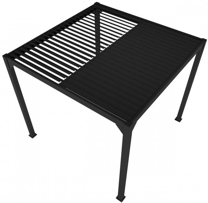 Jedna od najvećih prednosti ovog modela je krov s ručnim sustavom otvaranja koji omogućuje jednostavno podešavanje količine svjetla i sjene. Pomoću praktičnog mehanizma možete otvoriti ili zatvoriti lamele prema trenutnim vremenskim uvjetima, čime se postiže optimalna zaštita od sunca ili prozračnost po želji. Moderni dizajn s oštrim linijama i sofisticiranom završnom obradom u antracit nijansi savršeno se uklapa u suvremene arhitektonske trendove. Ako želite pokriti veći prostor, moguće je kombinirati dvije ili tri pergole u jedinstvenu relaksacijsku zonu koja će postati središte vašeg vrta ili terase.