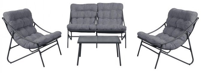 Ova sofisticirana garnitura predstavlja savršen spoj modernog dizajna, udobnosti i funkcionalnosti. Sastoji se od četiri komada – dvije udobne stolice, dvosjeda i praktičnog stolića – što omogućuje stvaranje idealnog kutka za opuštanje na vašoj terasi, balkonu ili vrtu. Konstrukcija od pocinčanog čelika s praškastim premazom osigurava izdržljivost i otpornost na vremenske uvjete, dok crna boja dodaje dozu elegancije i profinjenosti svakom vanjskom prostoru.